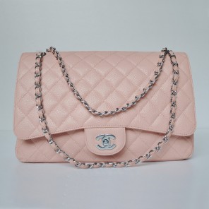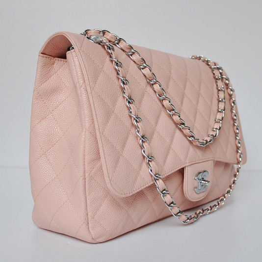 Chanel A47600 Caviar Leather Jumbo Flap Bag in Pink with Silver