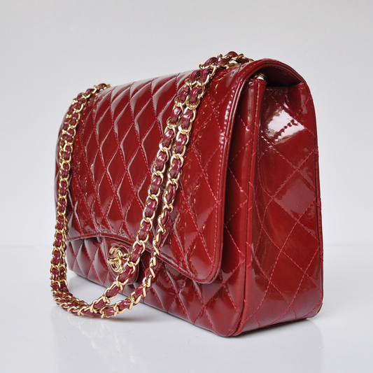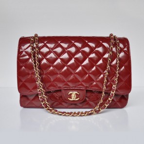 Chanel A47600 Patent Leather Jumbo Flap Bag in Claret with Gold