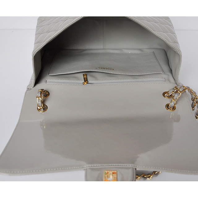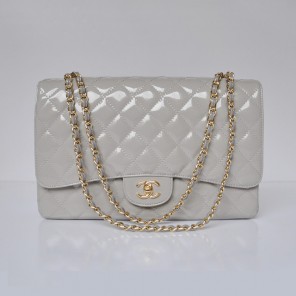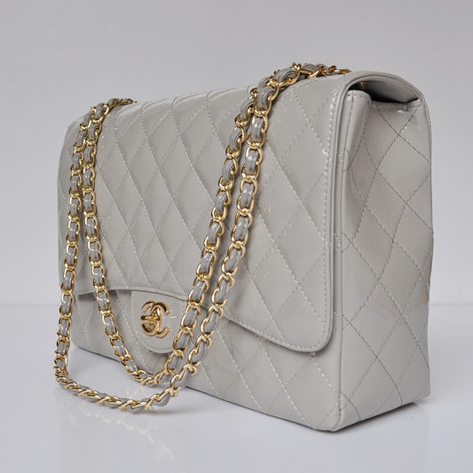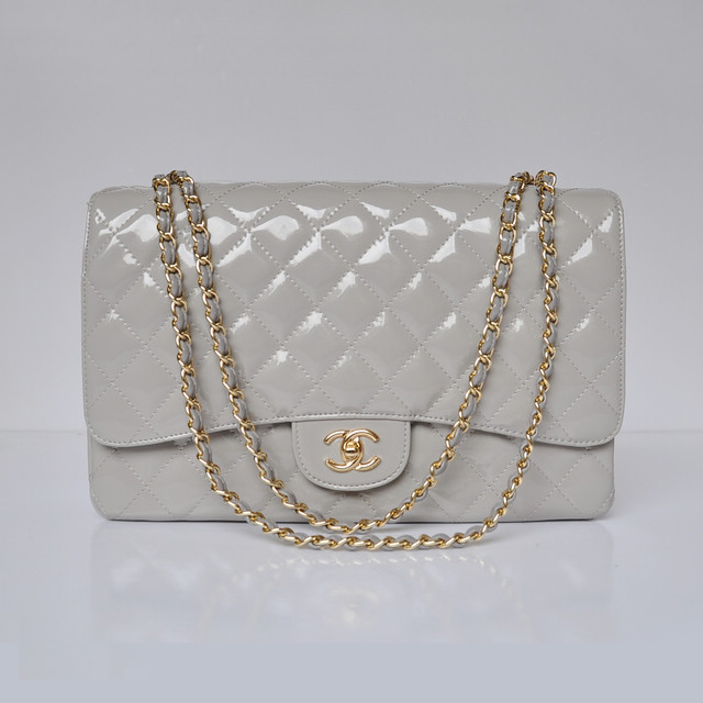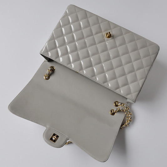 Chanel A47600 Patent Leather Jumbo Flap Bag in Gray with Gold