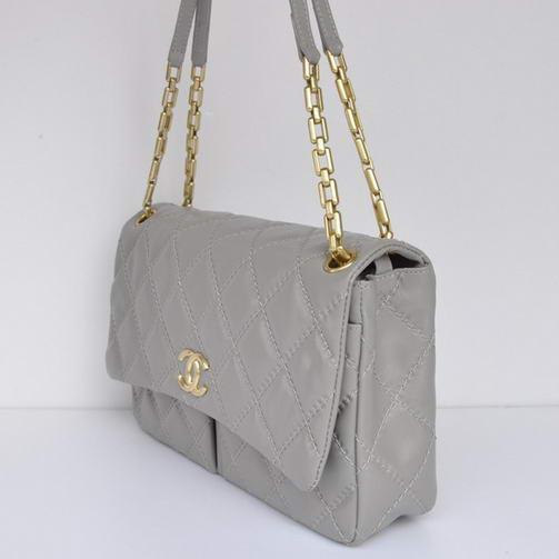 Chanel A50362 Grey Sheepskin Leather Flap Bag