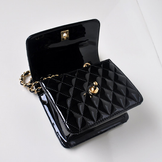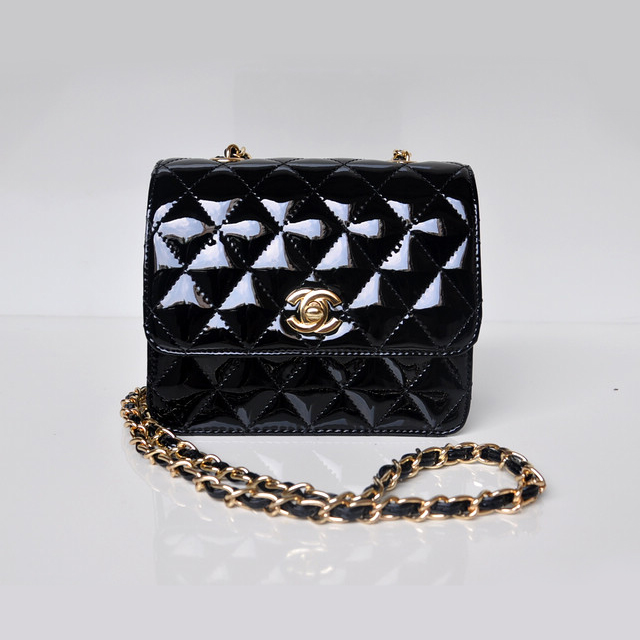 Chanel A67116 Classic mini Flap Bag Patent leather Black in Gold