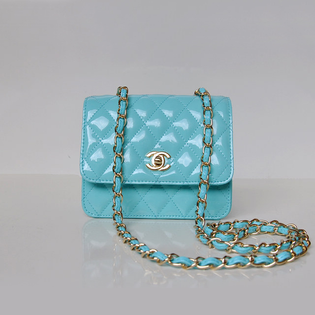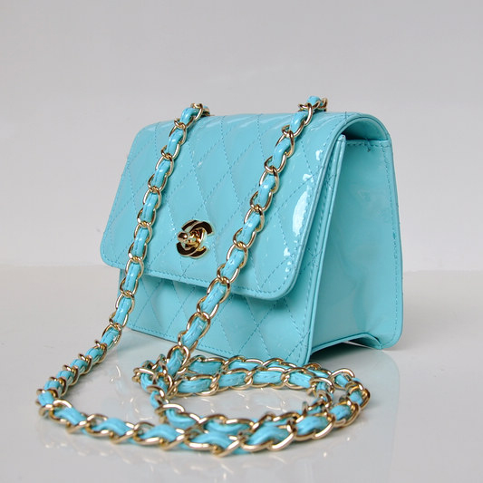 Chanel A67116 Classic mini Flap Bag Patent leather Light blue in Gold