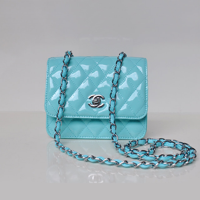 Chanel A67116 Classic mini Flap Bag Patent leather Light blue in Silver