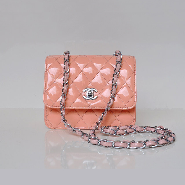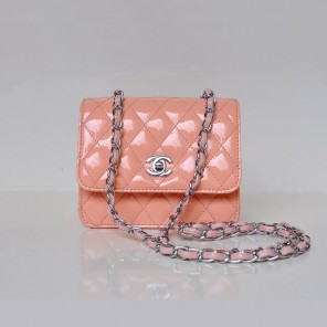 Chanel A67116 Classic mini Flap Bag Patent leather Pink in Silver
