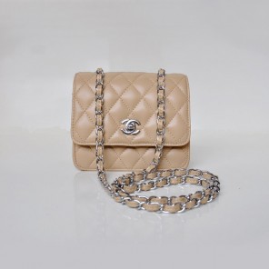 Chanel A67116 Classic mini Flap Bag Sheepskin leather Apricot in Silver