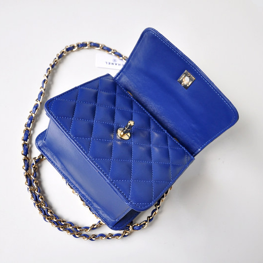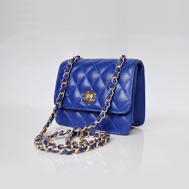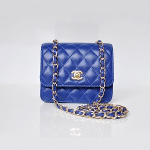 Chanel A67116 Classic mini Flap Bag Sheepskin leather Blue in Gold