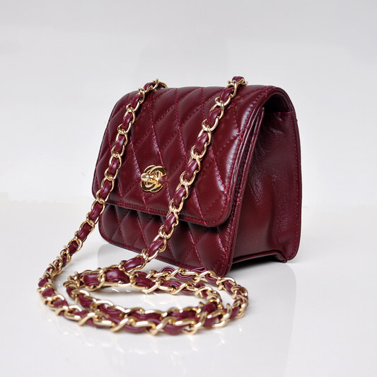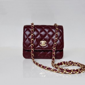 Chanel A67116 Classic mini Flap Bag Sheepskin leather Claret in Gold