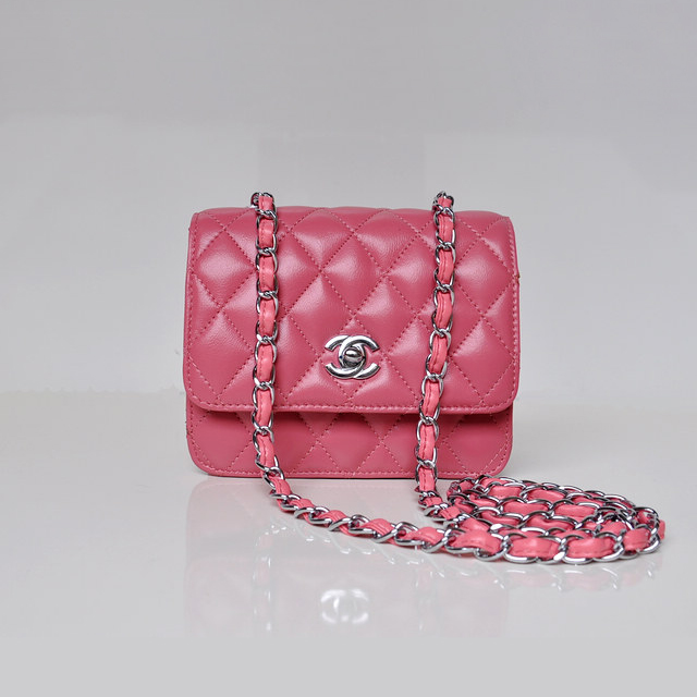 Chanel A67116 Classic mini Flap Bag Sheepskin leather Peach in Silver