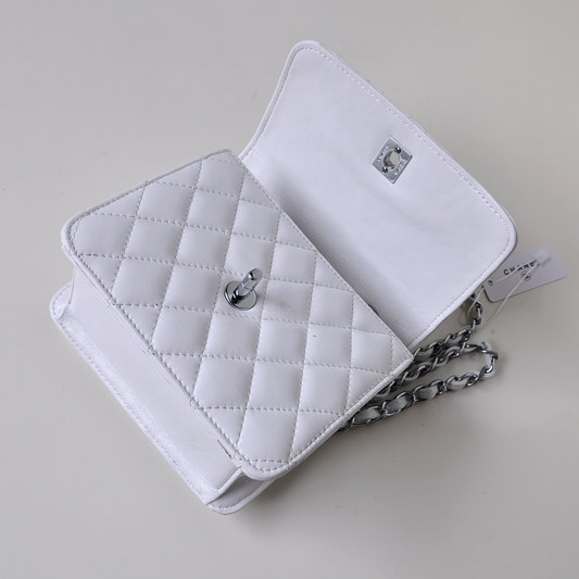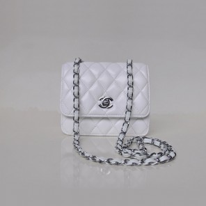 Chanel A67116 Classic mini Flap Bag Sheepskin leather White in Silver