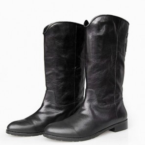 - Crescent toe, black leather, CC logo on the shoe body, flat heel, leather lining and sole