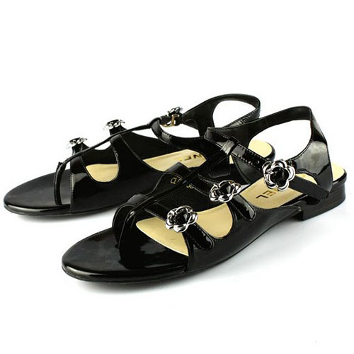 Chanel Black Patent Leather Flat Sandal