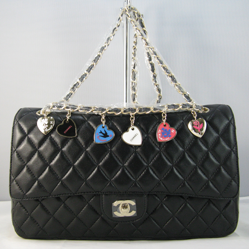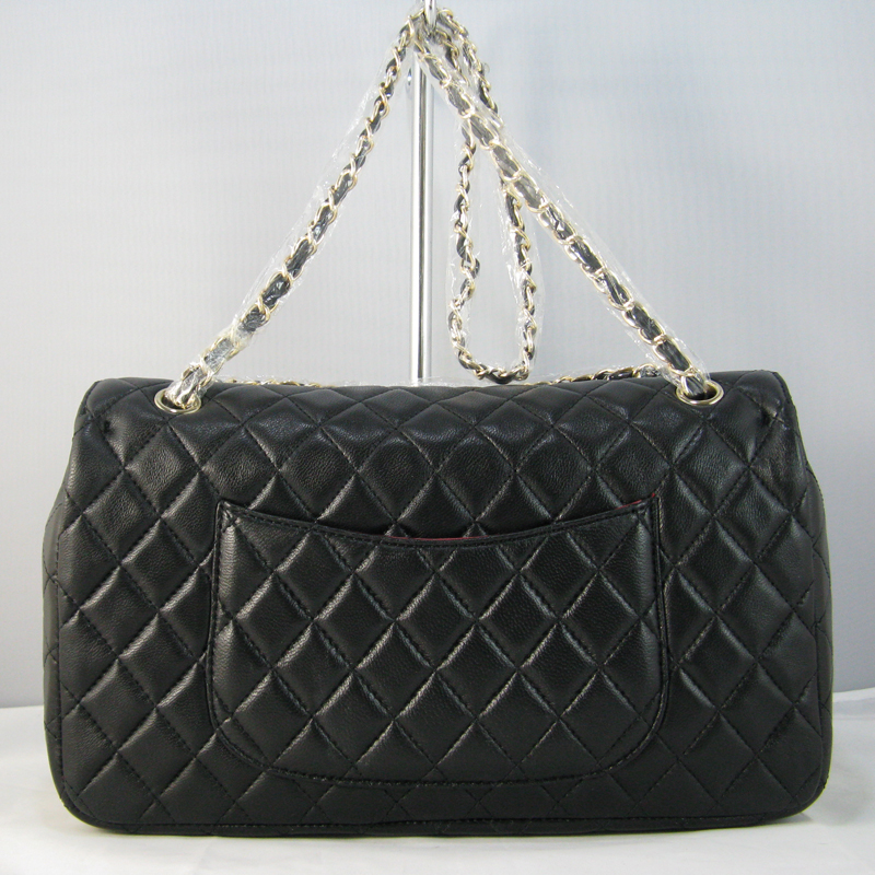 Chanel Black lambskin leather Flap Bag with Gold chain