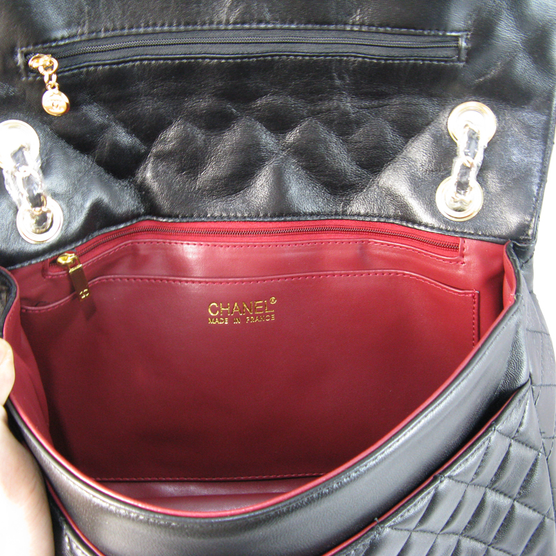 - Closure: Classic Chanel flap with front interlocking CC clasp