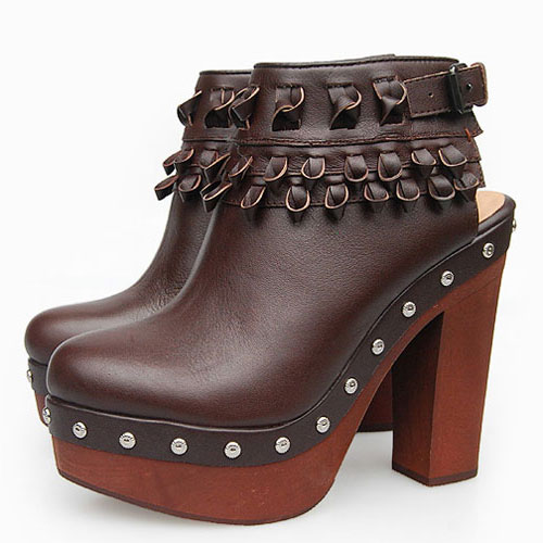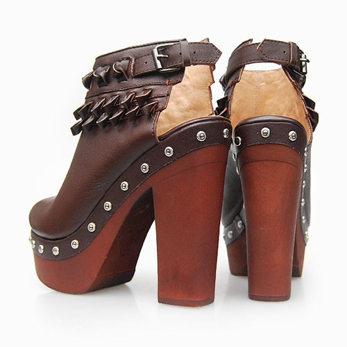 - Round toe, leather clog with iconic cap toe, antique-finish nail detail, leather decoration, thick wooden heel and sole, leather lining