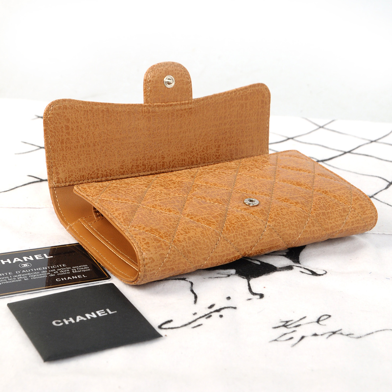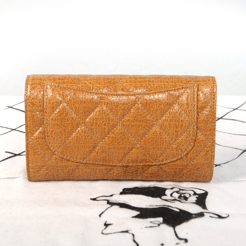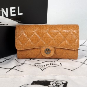 Chanel C006 Apricot Glazed Crackled Leater Long Tri-Fold Wallet