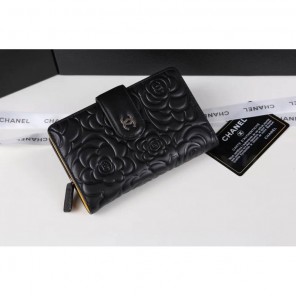 Chanel Camellias Bi-Fold Wallet Original Leather A50087 Black