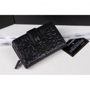 Chanel Camellias Bi-Fold Wallet Original Leather A50087 Black