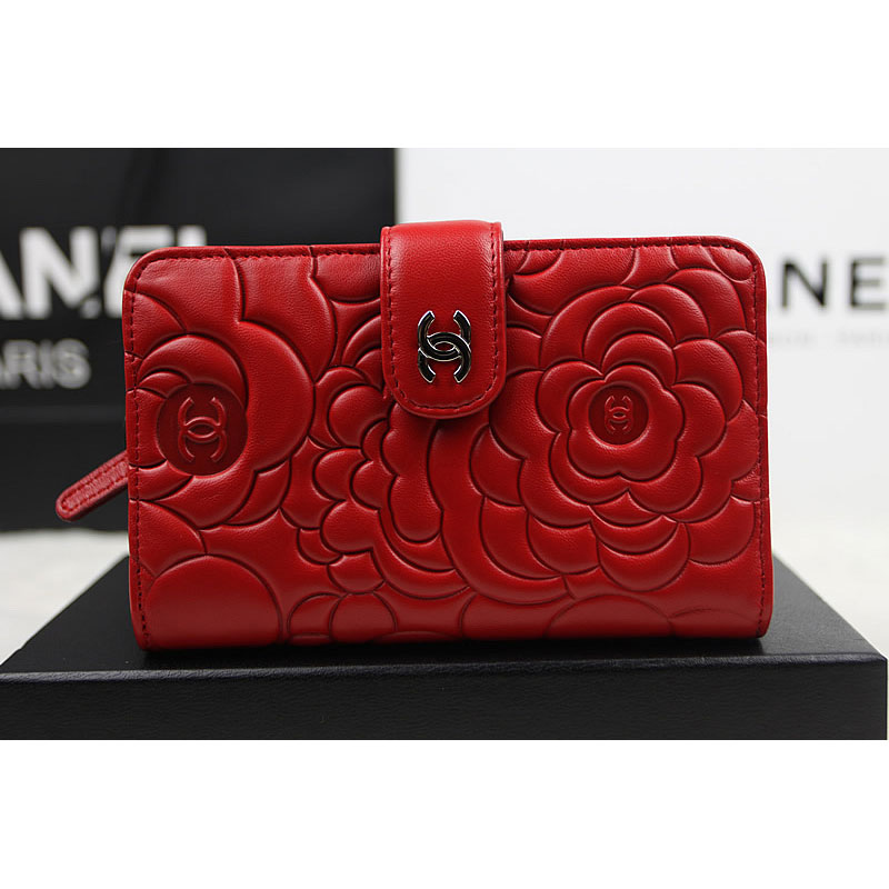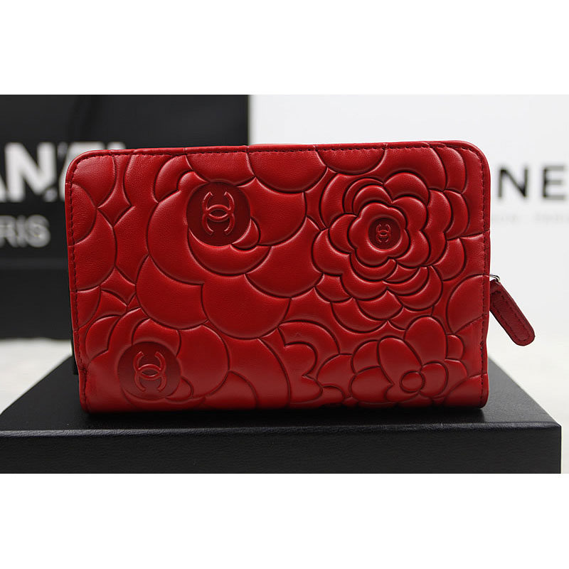 Chanel Camellias Bi-Fold Wallet Original Leather A50087 Red