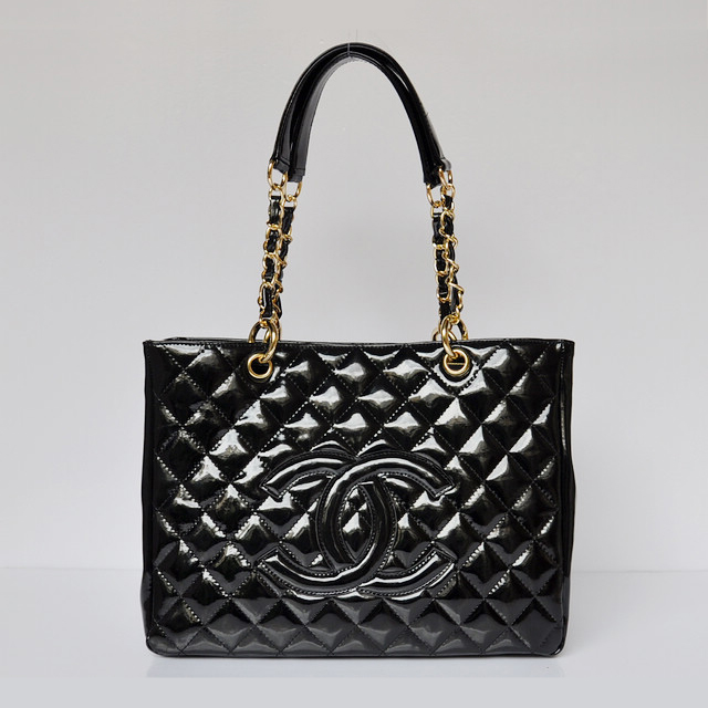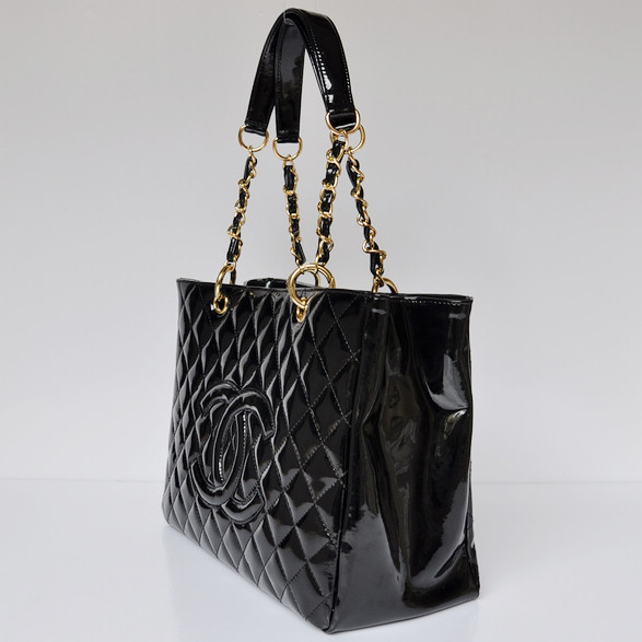 Chanel Classic CC Shopping Bag 20995 Patent leather Black Gold