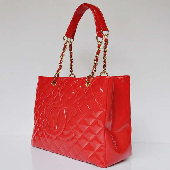 Chanel Classic CC Shopping Bag 20995 Patent leather Red Gold