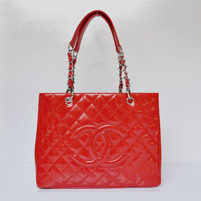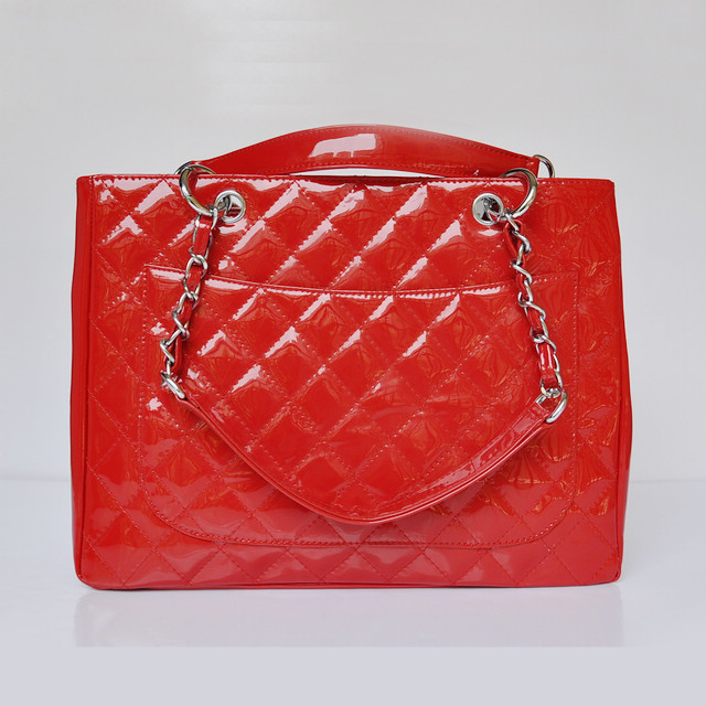 Chanel Classic CC Shopping Bag 20995 Patent leather Red Silver