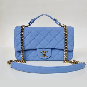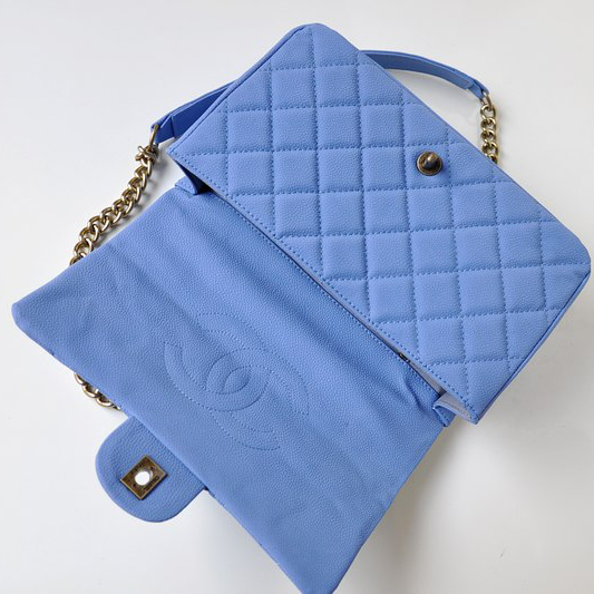 Chanel Classic Cannage Pattern Nubuck Leather Top Flap Bag A67622 skyblue