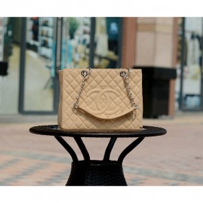 Chanel Classic Coco Bag Apricot GST Caviar Leather A50995 Silver