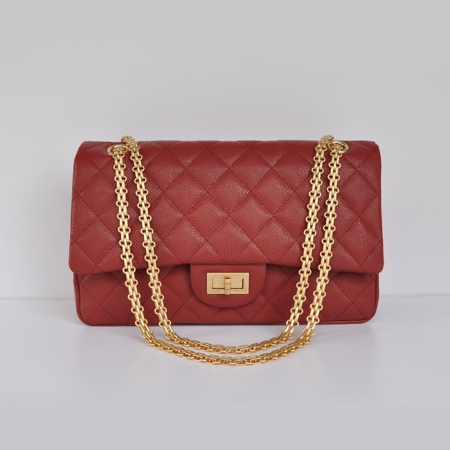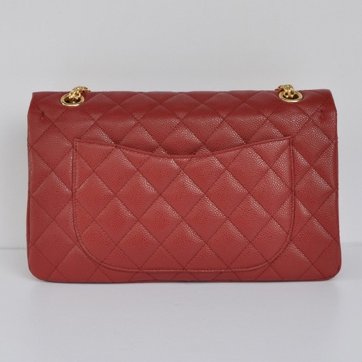 Chanel Classic Falp Bag Caviar Leather A28668 in Red with Gold Chain