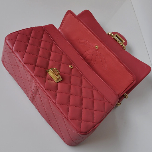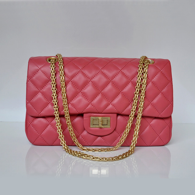 Chanel Classic Falp Bag Sheepskin Leather A28668 in Peach with Gold Chain