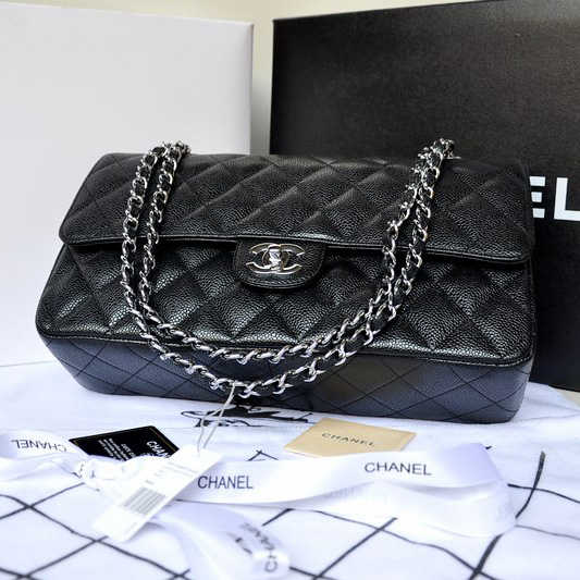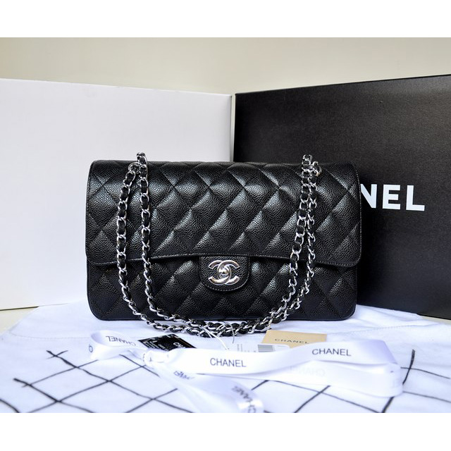 Chanel Classic Flap Bag 1113 Original Caviar leather in Black with Silver