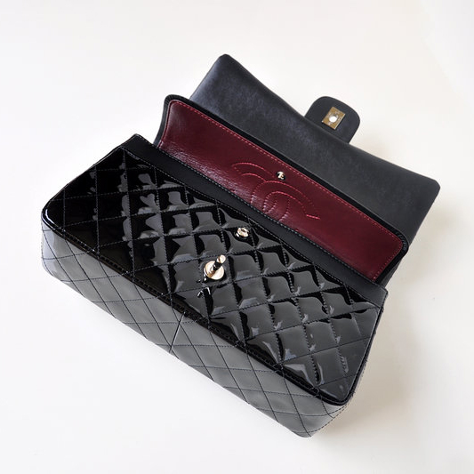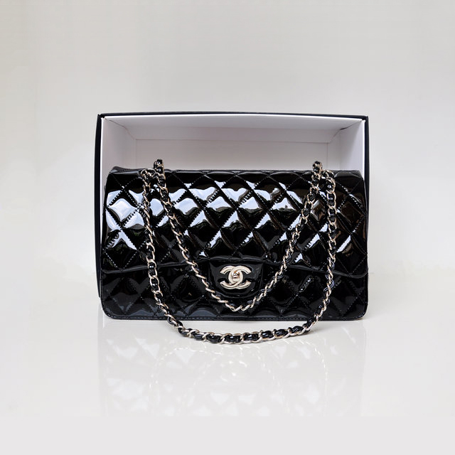 Chanel Classic Flap Bag 1113 Original Patent leather in Black with Silver