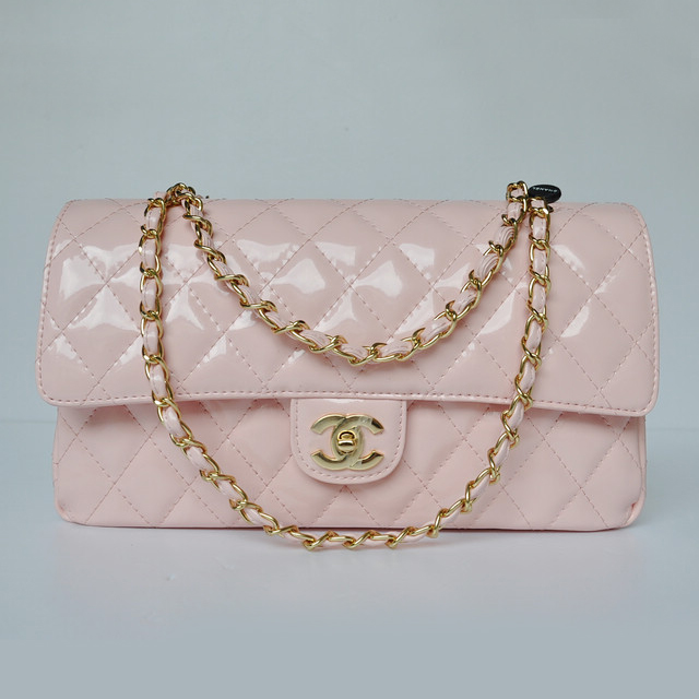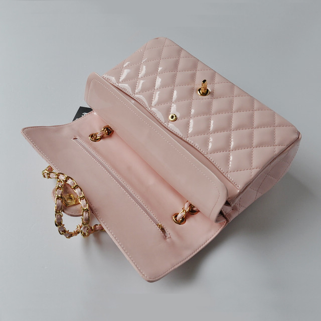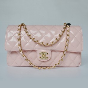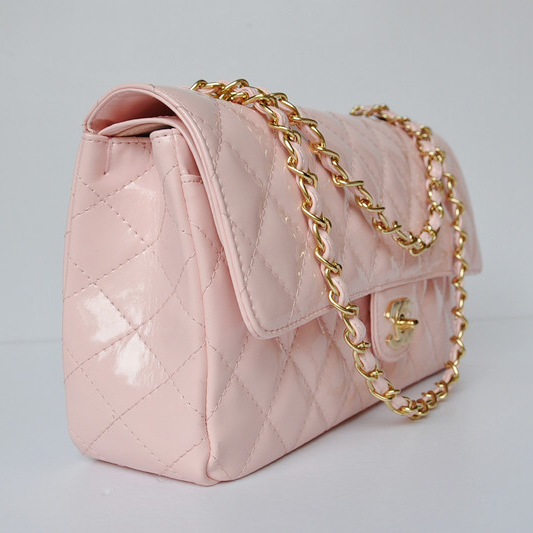 Chanel Classic Flap Bag 1113 Patent leather in Pink with Gold
