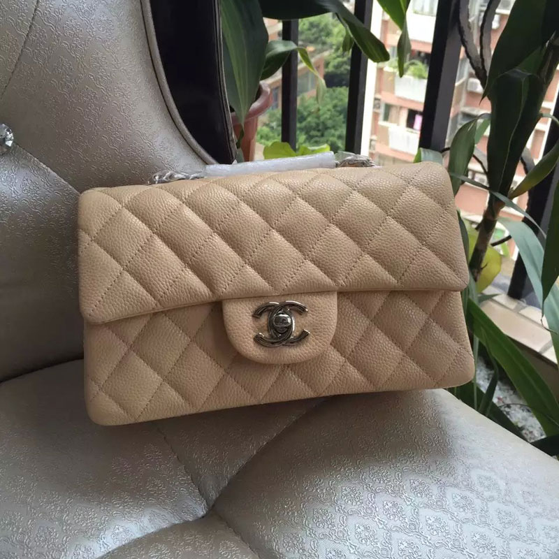 Chanel Classic Flap Bags Original Caviar Leather A1116 in Apricot with Silver