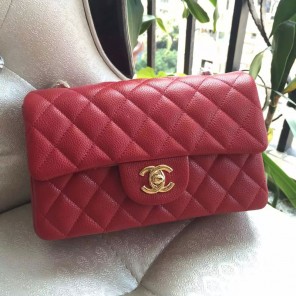 Chanel Classic Flap Bags Original Caviar Leather A1116 in Red with Gold