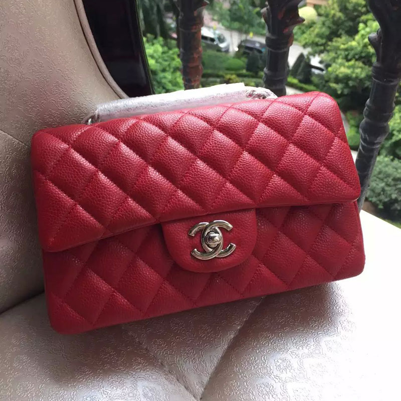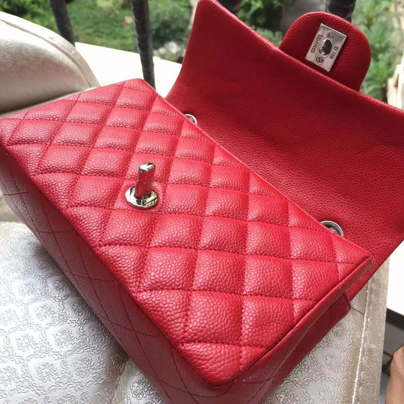 Chanel Classic Flap Bags Original Caviar Leather A1116 in Red with Silver