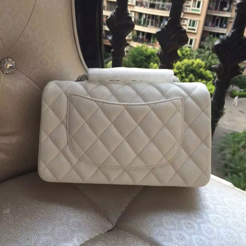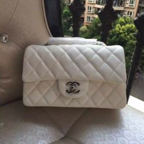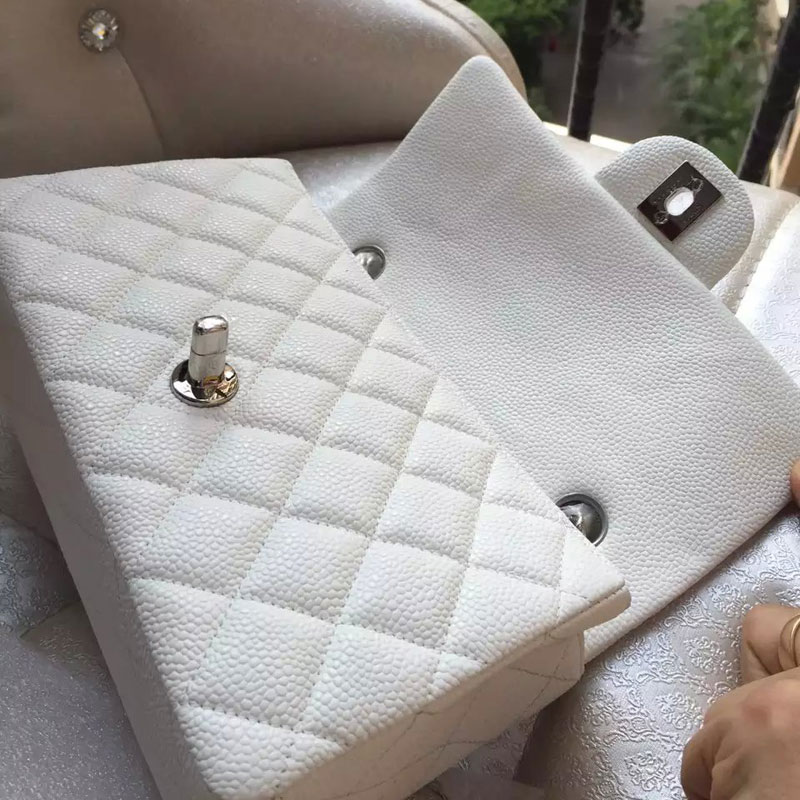 Chanel Classic Flap Bags Original Caviar Leather A1116 in white with Silver