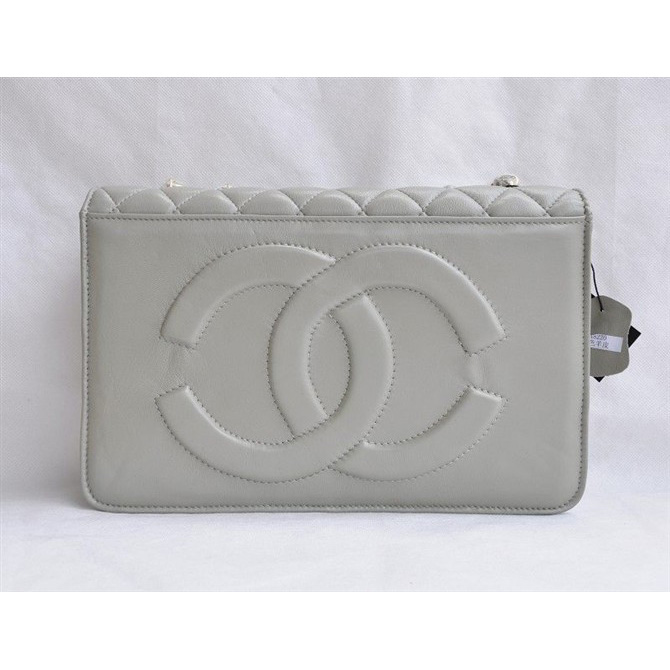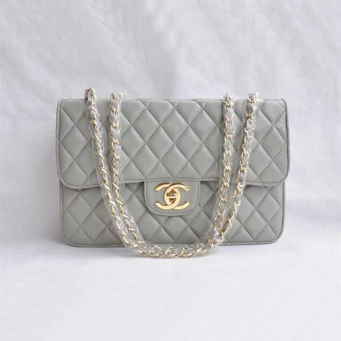 Chanel Classic Flap Bags Quality Grey Leather with Gold CC Logo 48220