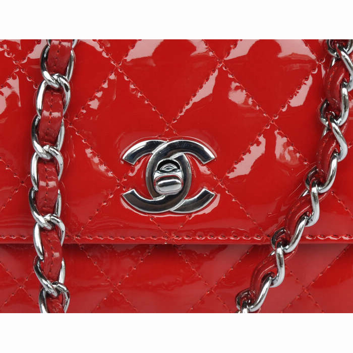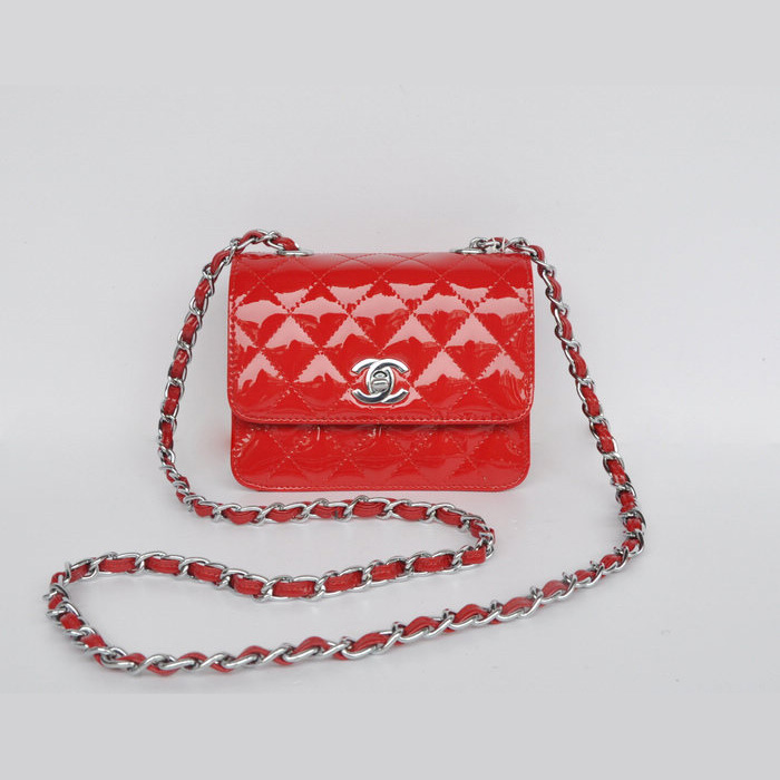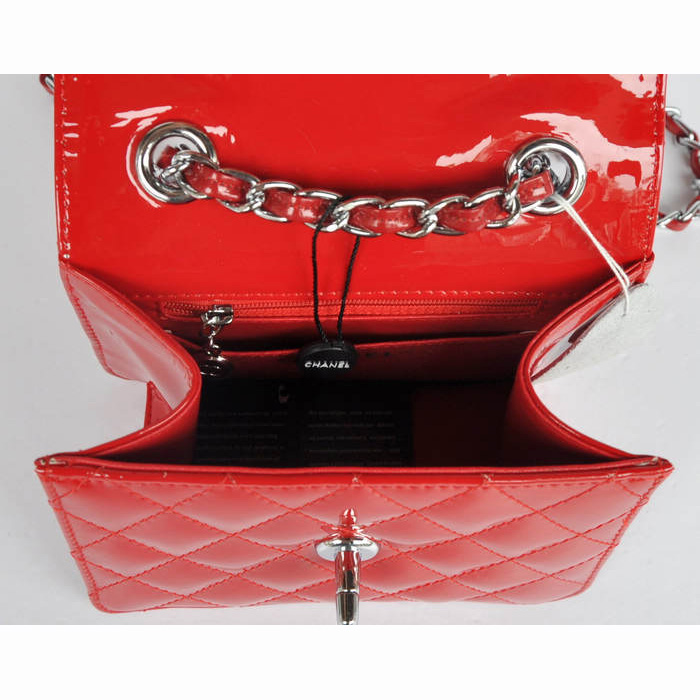 Chanel Classic Micro Flap Bag 1118 Red Patent leather Silver Hardware
