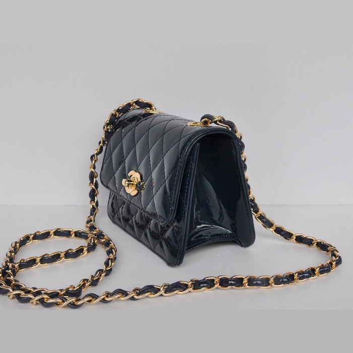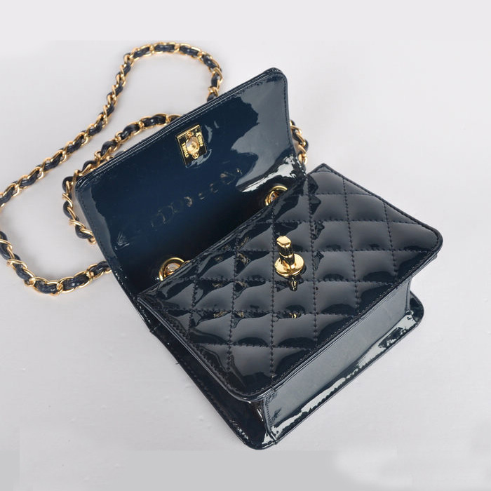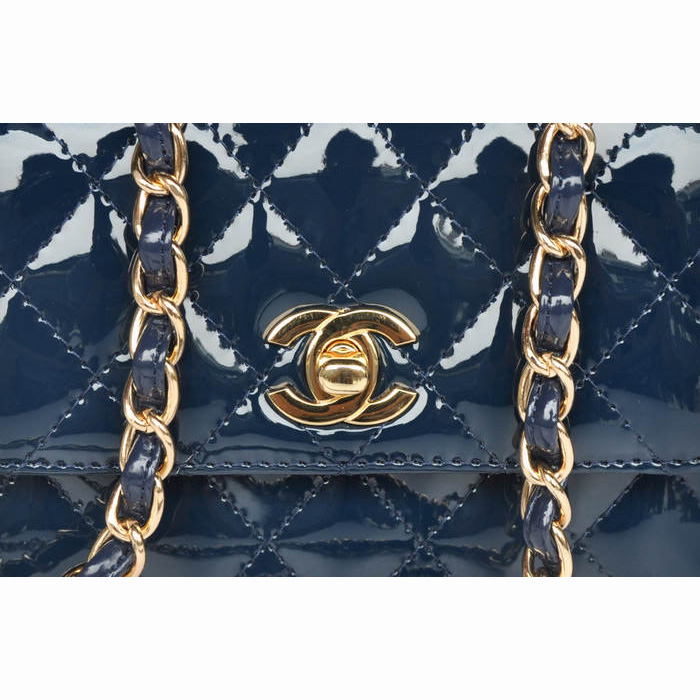 Chanel Classic Micro Flap Bag 1118 Royal blue Patent leather Gold Hardware