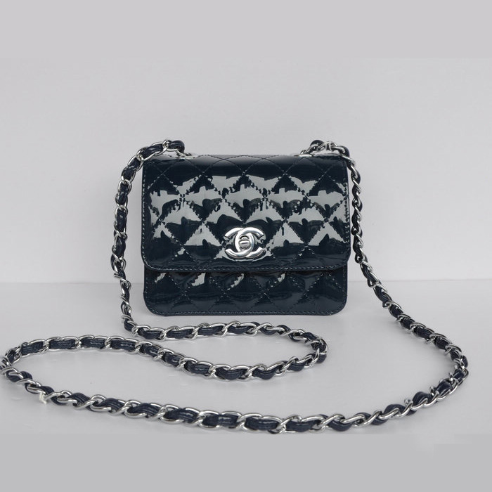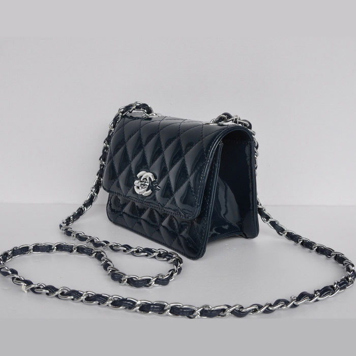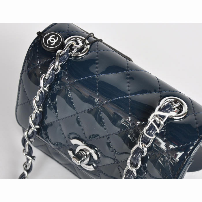 Chanel Classic Micro Flap Bag 1118 Royal blue Patent leather Silver Hardware