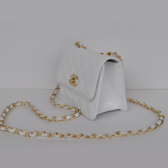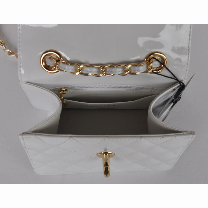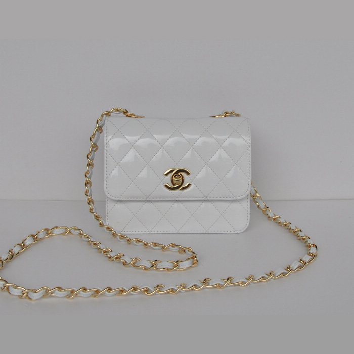Chanel Classic Micro Flap Bag 1118 White Patent leather Gold Hardware
