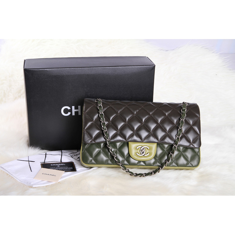 Chanel Classic Original Leather Jumbo Flap Bag 1113 Brown&Green&Cyan