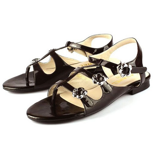 Chanel Coffee Patent Leather Flat Sandal