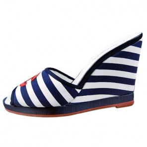 - Round toe, cotton blue/white stripe shoe body, CC logo printed on the vamp, flat heel, rubber sole, leather lining