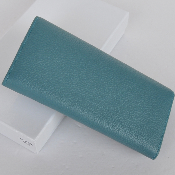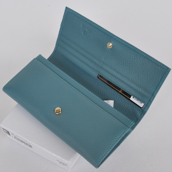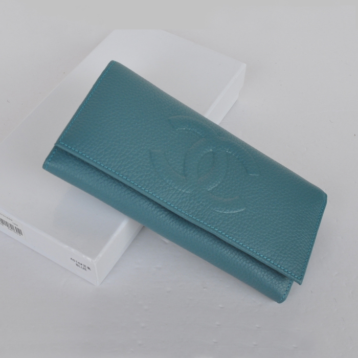 Chanel Emboss CC Logo Litchi stripes leather Bi-Fold Wallet C514 Blue