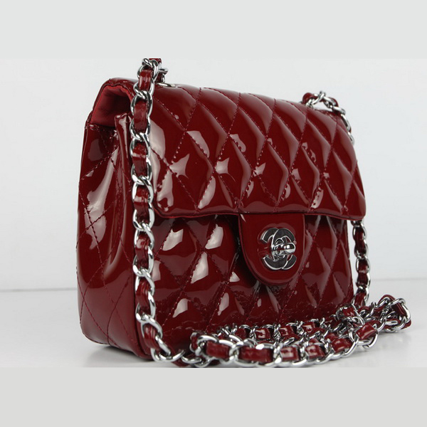 Chanel Flap Bag Maroon Patent Leather with Silver Chain 1115