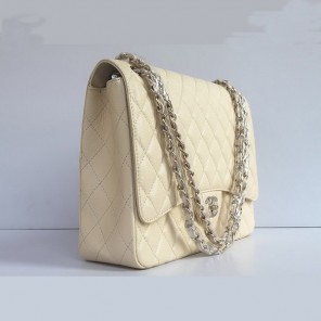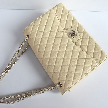 Chanel Flap Bag Quilted Beige Caviar with Gold Chain 1116
