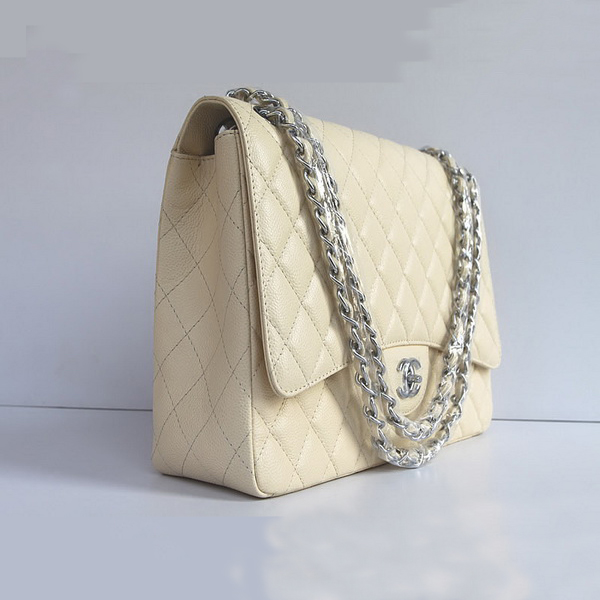 Chanel Flap Bag Quilted Beige Caviar with Silver Chain 1116