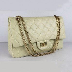 Chanel Flap Bag Quilted Beige Leather with Gold Chain 48102