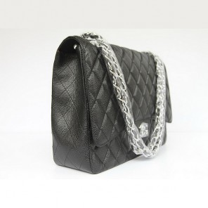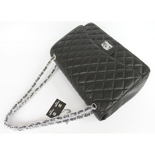 Chanel Flap Bag Quilted Black Caviar with Silver Chain 1116